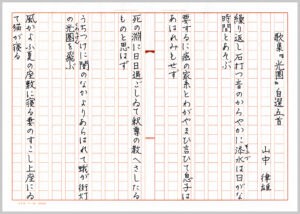 この企画に合わせ、宮崎の観光地や特産品を題材に詠んだ『みやざき百人一首』(発行/若山牧水賞運営委員会)の中から、歴代受賞者らの直筆原稿も展示しています。