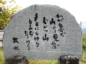 わが急ぐ山より見ればむかつ山夕日にもゆるもみぢなりけり