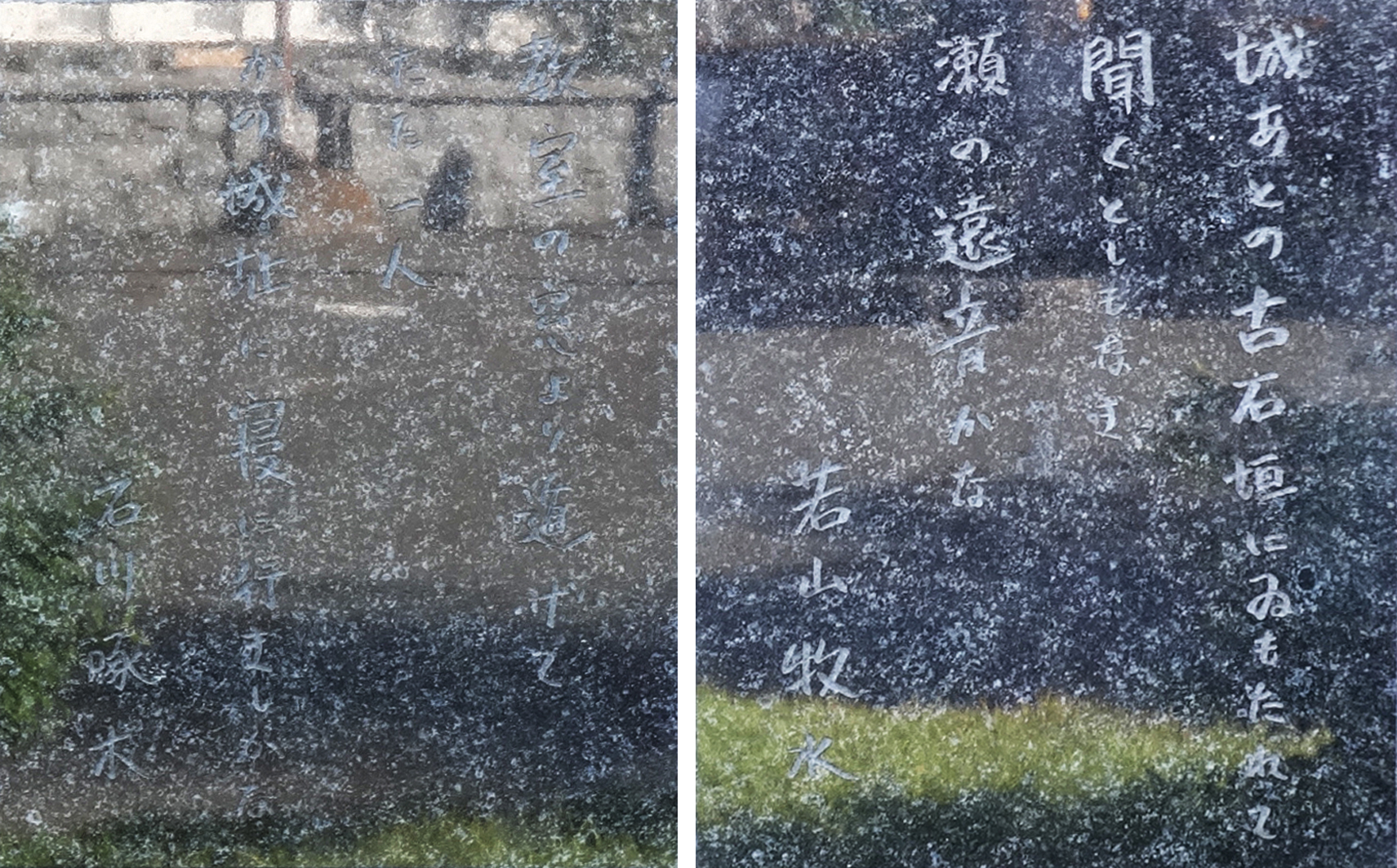 明治45年春、啄木が27歳でこの世を去る際、その枕元に牧水がいた。牧水は大正5年、東北を巡る旅で同地を訪れると、かつての親友啄木を偲びながら数首を残している。深い友情を語る歌碑として、二人の歌が刻まれている。