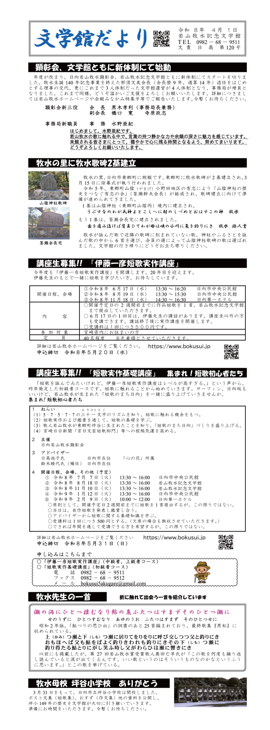 牧水に関する情報をまとめた文学館だよりを毎月1回発行しています。